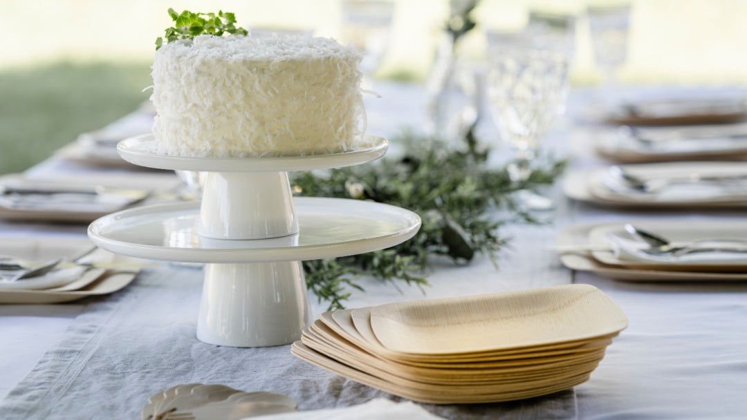 Reusable plates are a fantastic option, but sometimes, budget, style, or your time constraints require a disposable solution. Veneerware can save you time and money, too. Our plates are more affordable than renting or purchasing china plates. And, not having to wash dishes at the end of the night saves on staffing, space, and water use costs.