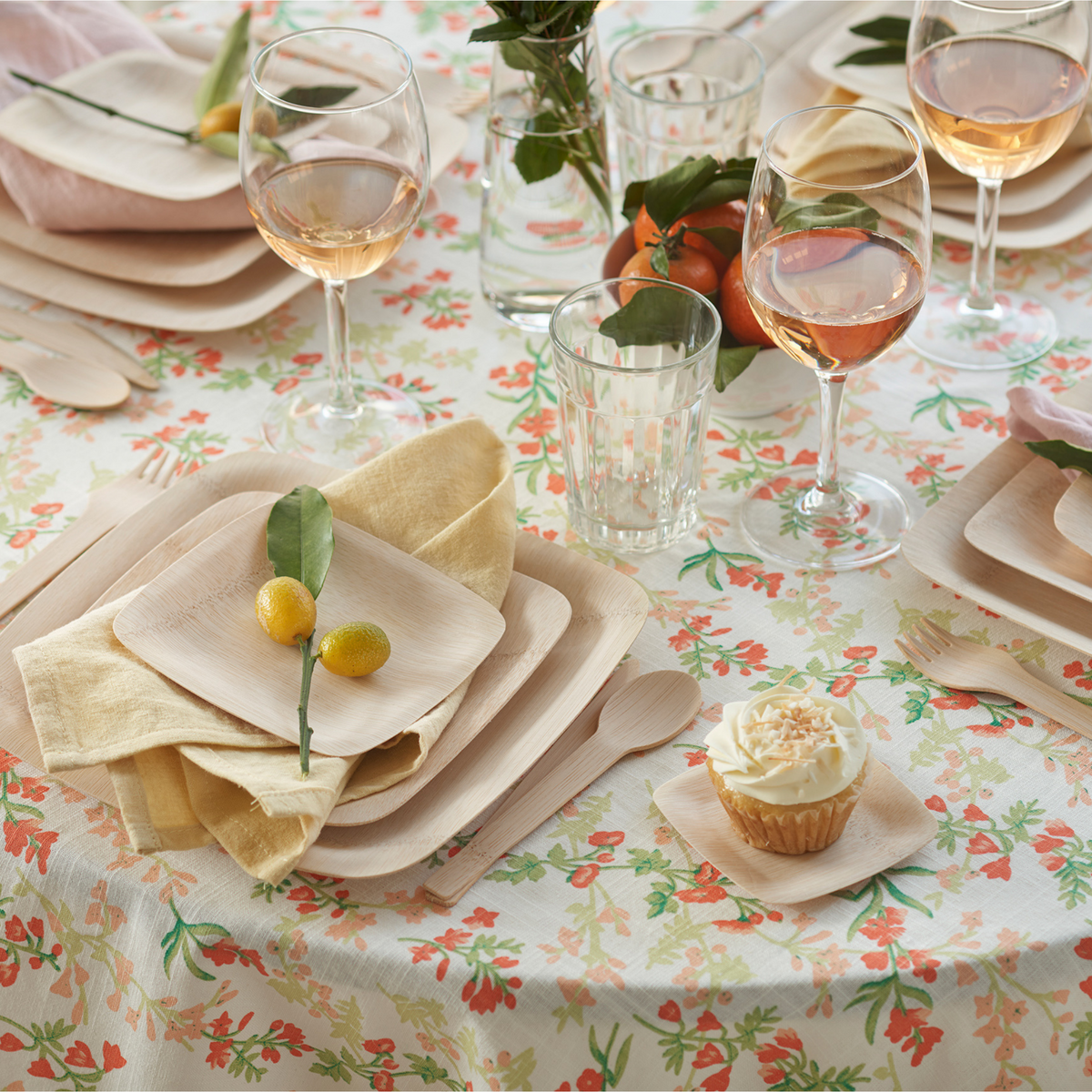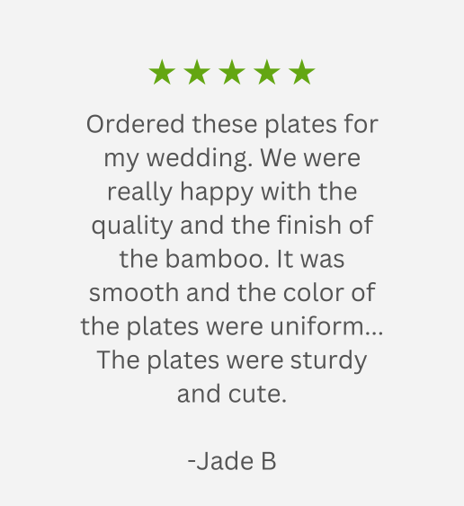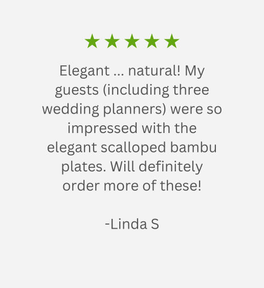 The ultimate plastic-free solution for your eco-friendly event needs. Choosing compostable dinnerware shouldn't have to mean giving up style, which is why our plates are an easy choice. Made entirely from natural and attractive bamboo, our dinnerware is sturdier than paper, much more attractive than plastic, and offers a clean and consistent look that palm leaf plates simply can't compare to.