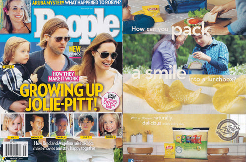 In the current August 29th issue. The one with the Brad and Angelina brood on the cover. Well, much to our surprised, in a Frito-Lay ad. There on top, is unmistakably, our product.