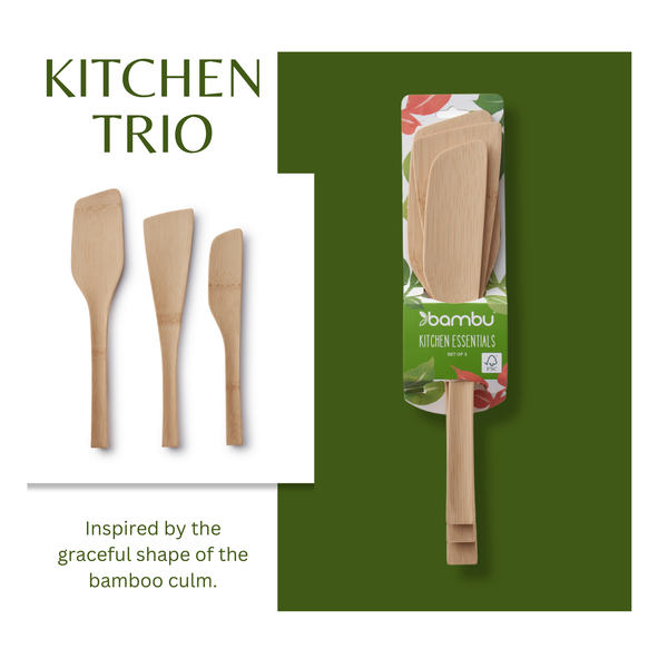 From basic kitchen utensil sets to our much-loved and uniquely designed Spoontula, Bambu’s range of cooking utensils are a naturally attractive solution to any cooking need. We are proud to offer a collection of bamboo cooking utensils that are made from FSC®-certified 100% bamboo. Crafted from a single piece of wild-grown bamboo, our utensils are hand-finished and free of glues, lacquers, or chemicals of any kind.Why choose bamboo cooking utensils? We believe that the utensils you use to prepare and cook your food should be just as clean as the ingredients you choose. By souring only FSC®-certified 100% bamboo from the Fujian Province of China, we ensure that the cookware you use on a daily basis is safe for yourself and those you share your meals with. Unlike cooking utensils made from synthetic materials like plastic and silicone , bamboo is a natural and renewable material that will never contaminate your meals with chemicals.