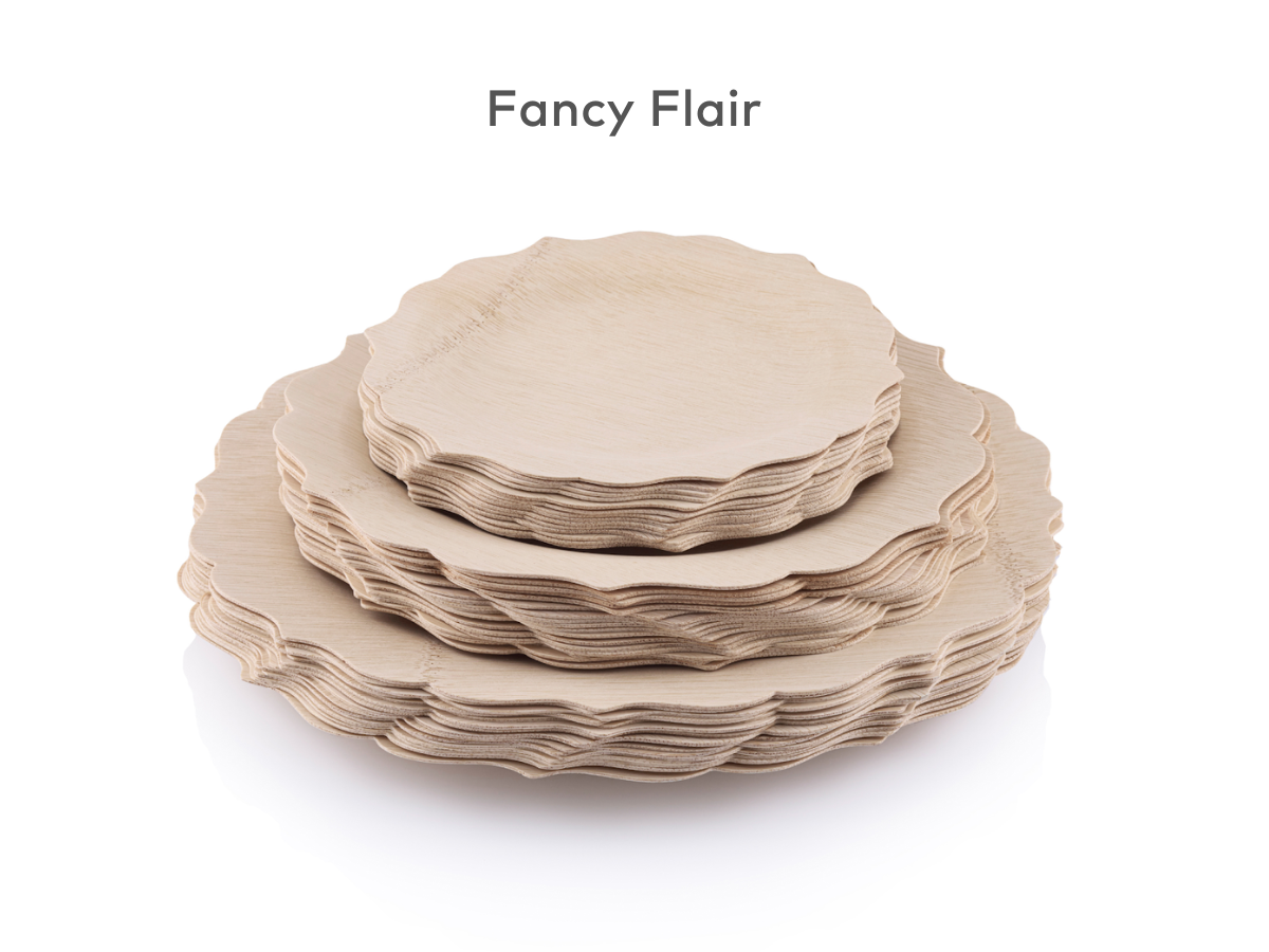 While many will find the ridges and varying colors of palm leaf plates too casual, bamboo offers an even, consistent option. For those desiring a sustainable alternative, the Compost-Certified attributes of our tableware will please. And for those with a tighter budget, the affordability will easily outmatch rented or purchased tableware options.